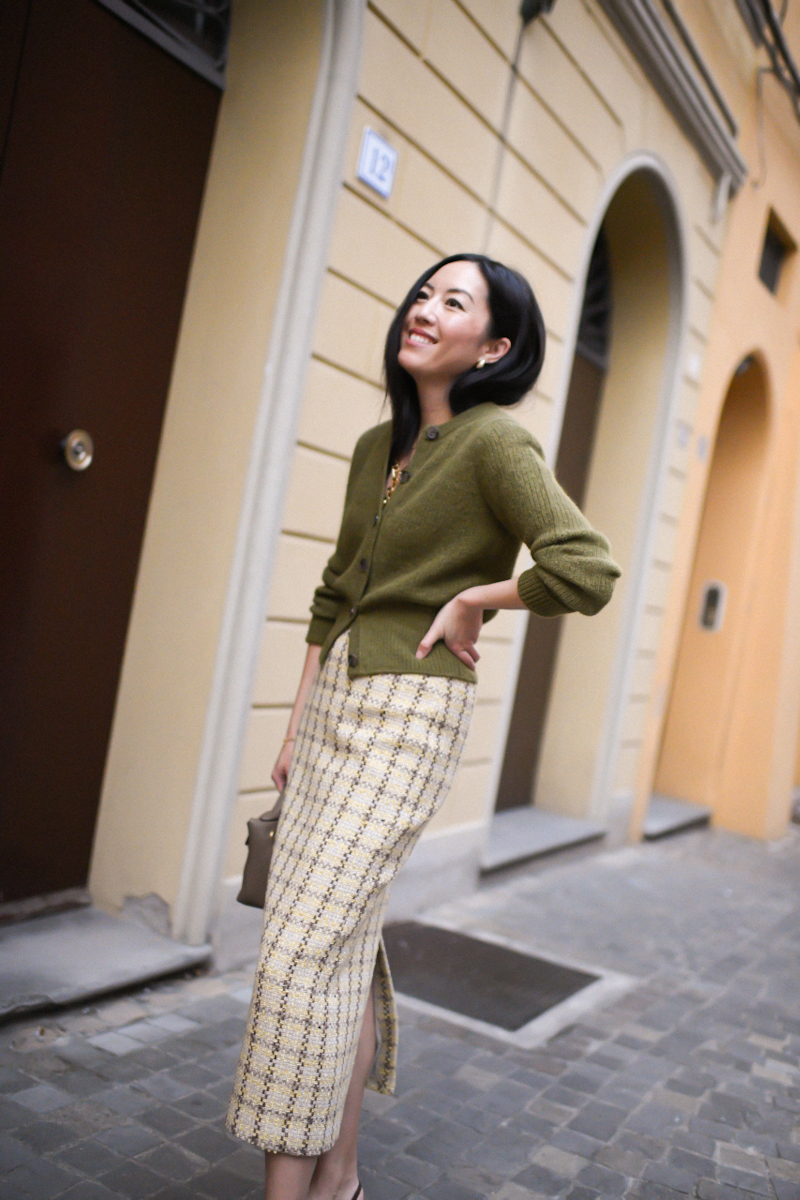 You’ve seen this skirt already but the cardigan is new, amazing and so feminine and chic. Love the fit, love the color. The sling backs I’ve been wearing nonstop (as well as here) are 25% off right now, and I’m pretty sure they’re the only heels I’ve reached for lately. Remember the brown suede YSL pumps I wore endlessly and shamelessly for nearly 4 years (or more!)? These might be going in that direction…
