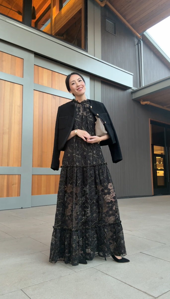 Black lace full length dress (here)