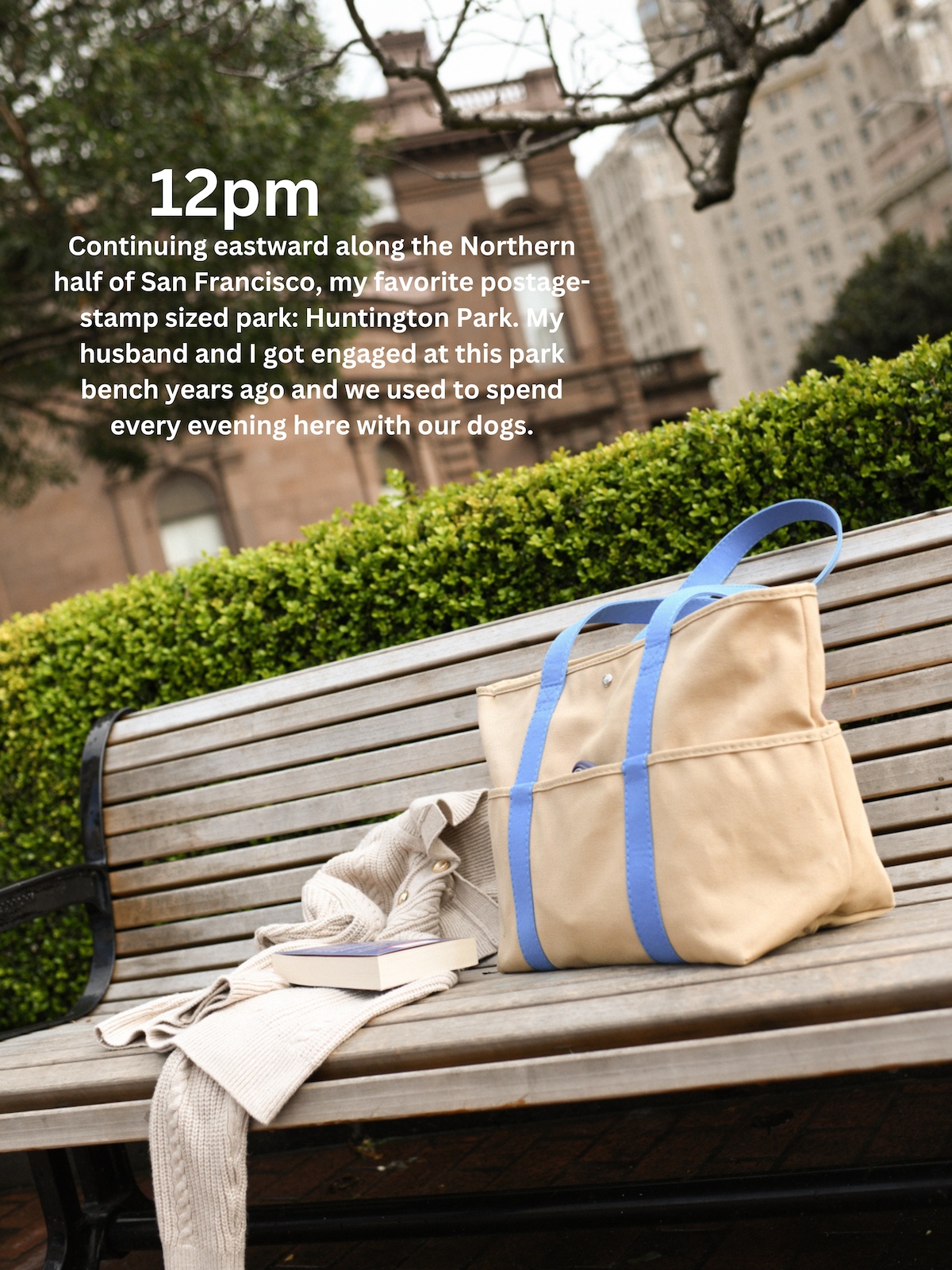 Tote bag (on park bench, here)